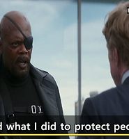 백그라운드 스토리입니다. 나타샤(블랙 위도우)는 쉴드와 히드라의 존재를 인터넷에 공개하려고 했다가 오히려 자신의 정보가 알려지게 되죠. 공식 석상에서 검사를 받고 있는 상황인데 이 상황에서 어떤 영어대사들이 오갈지 도전합니다.